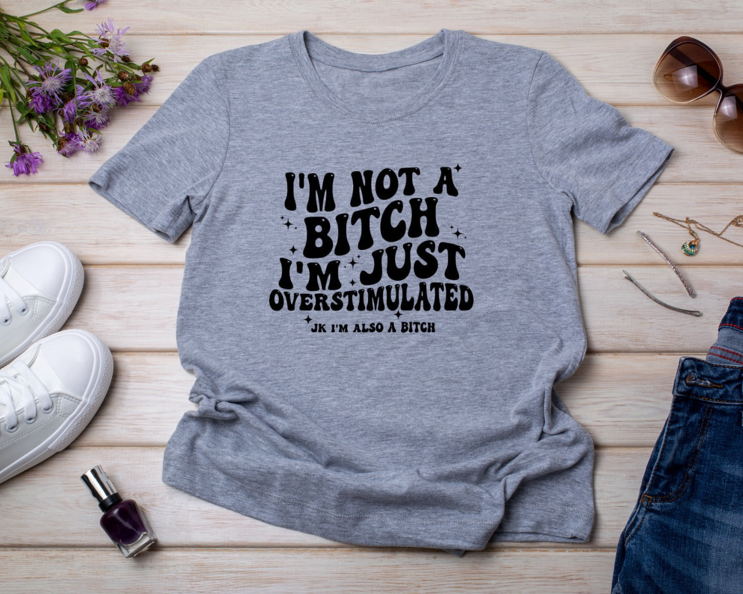 I'm not a Bitch I'm just Overstimulated - TShirt or Crewneck Sweatshirt